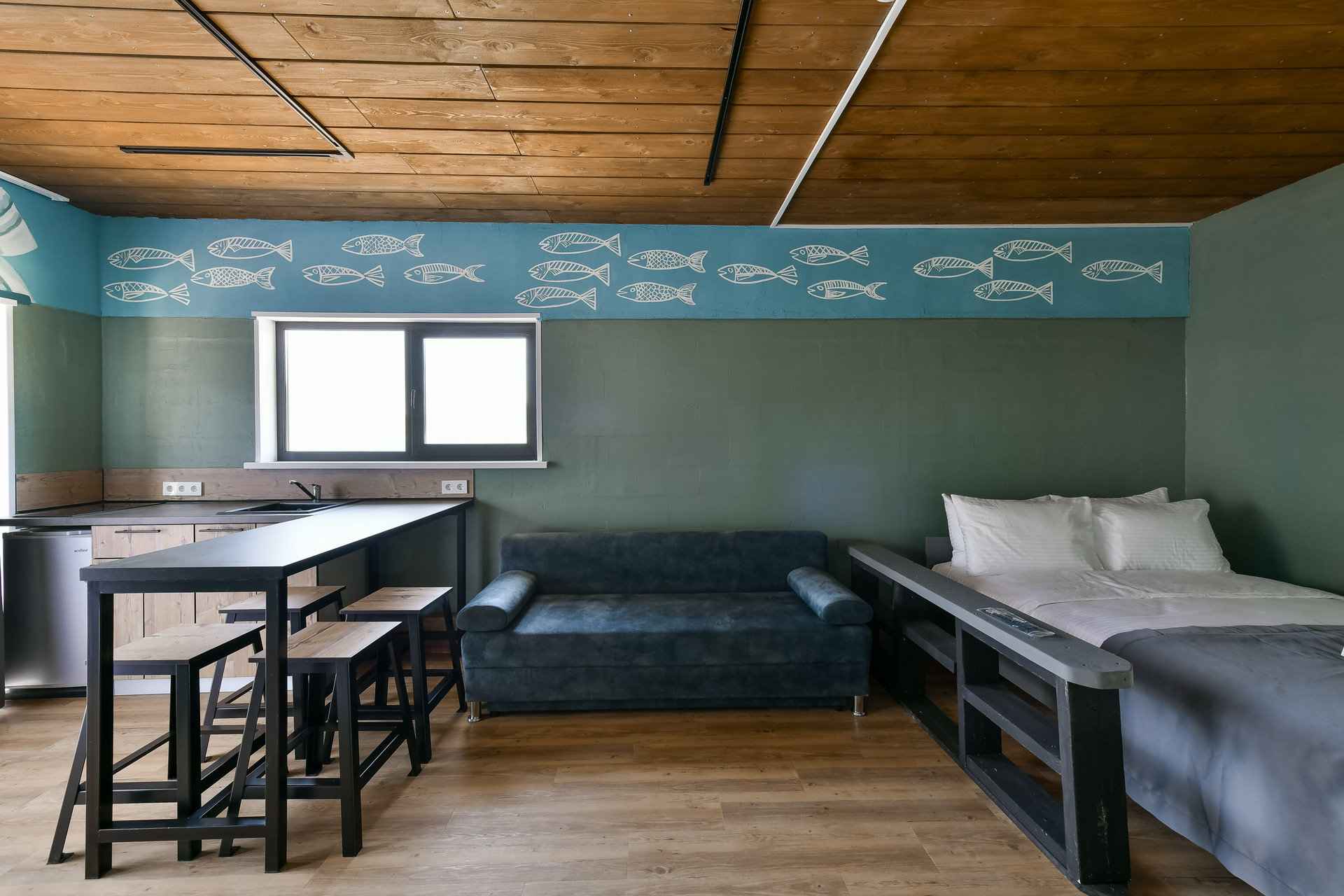 Номер-студио с видом на море. Двуспальная кровать, раскладной диван.