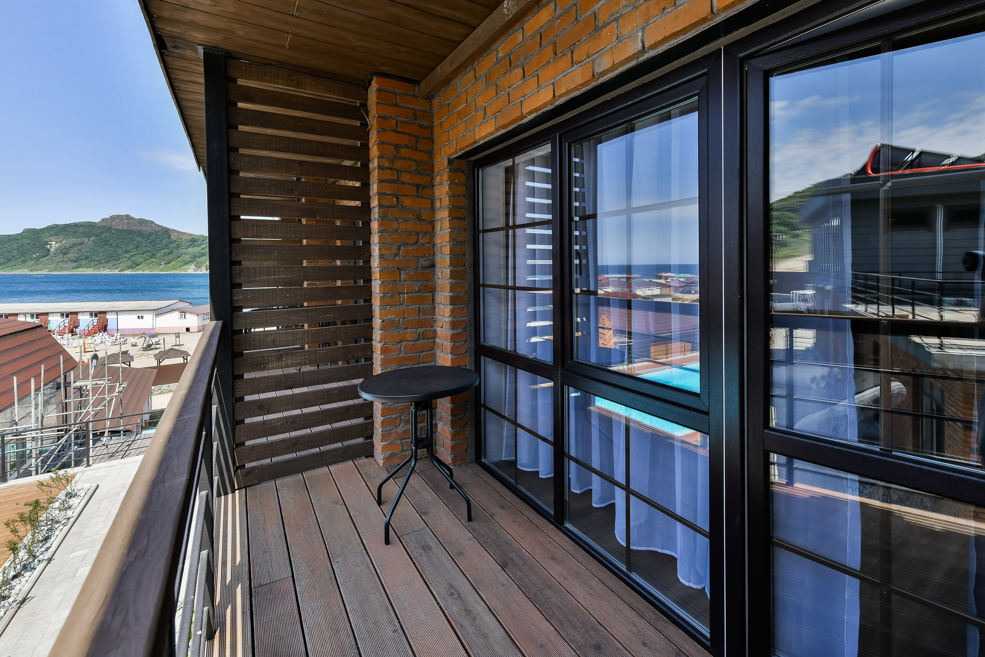 Номер-студио на втором этаже с видом на море. Двуспальная кровать.