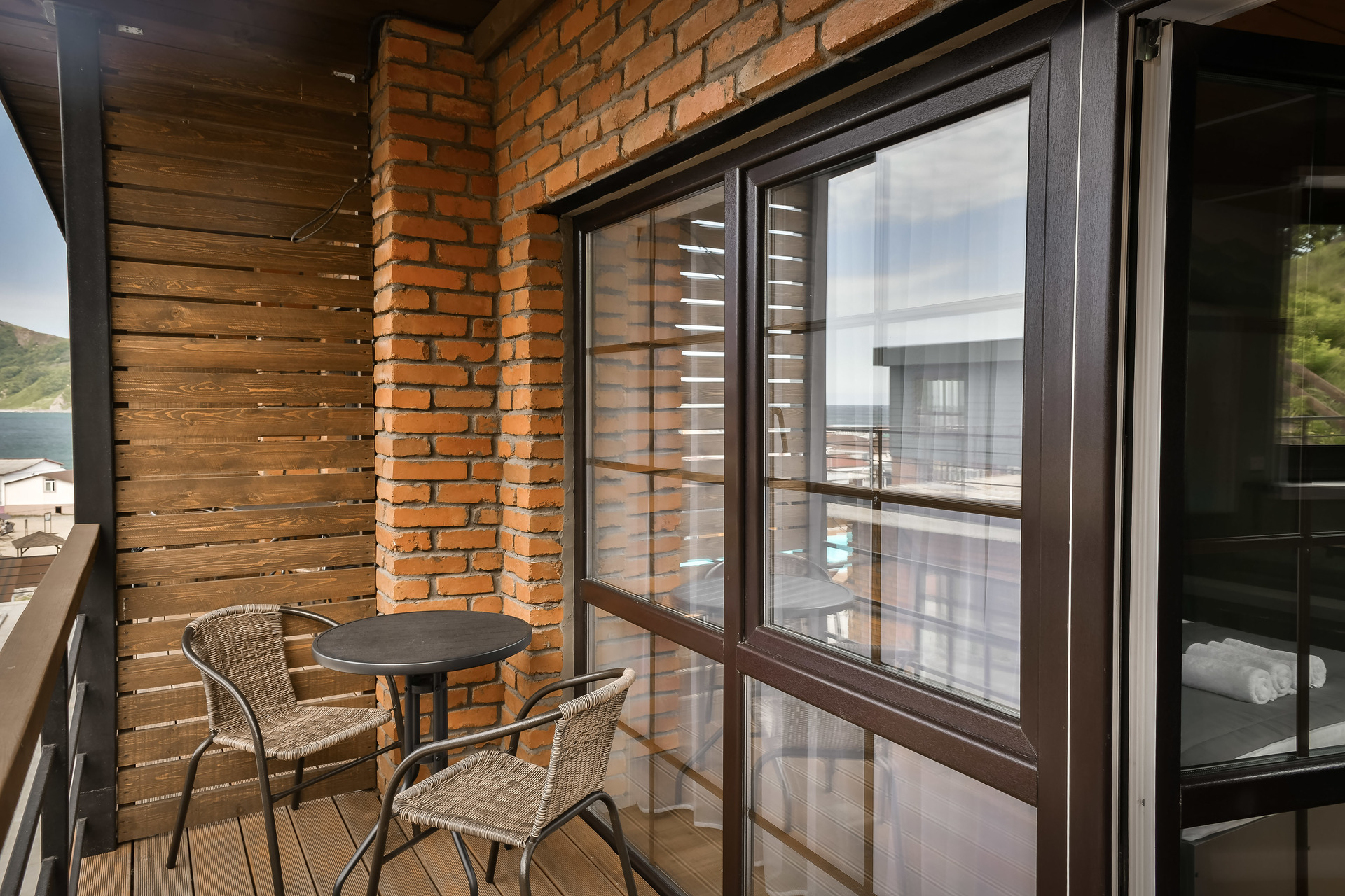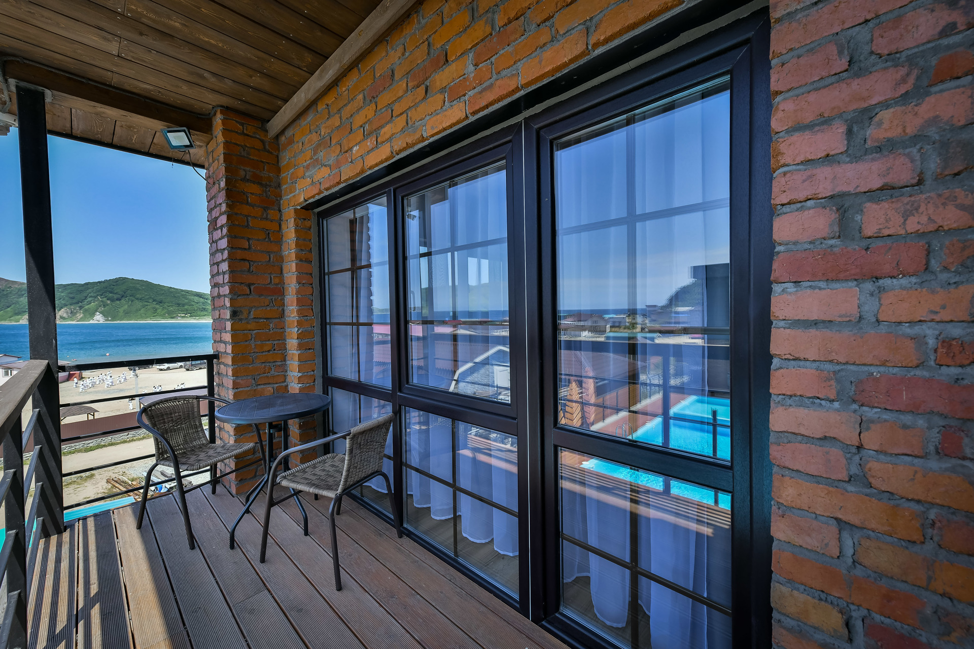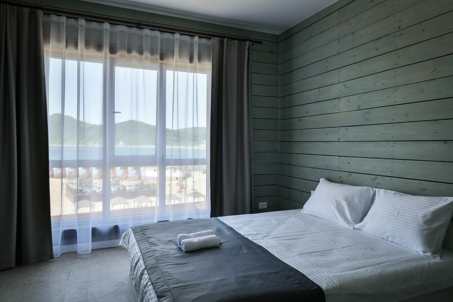 Номер-студио на втором этаже с видом на море. Двуспальная кровать.