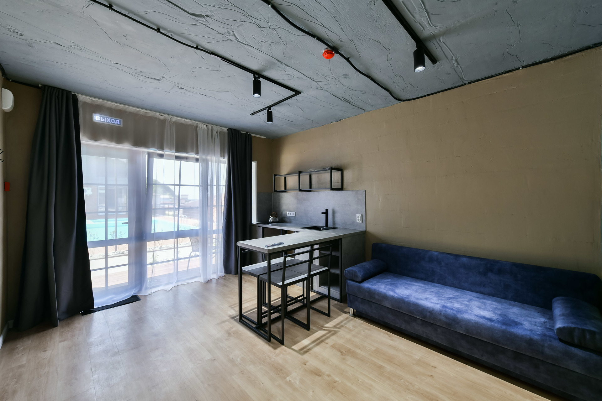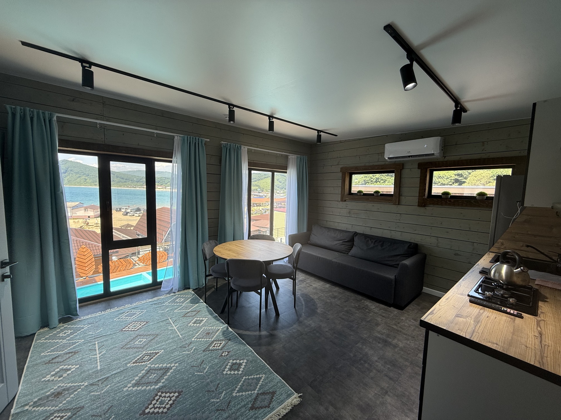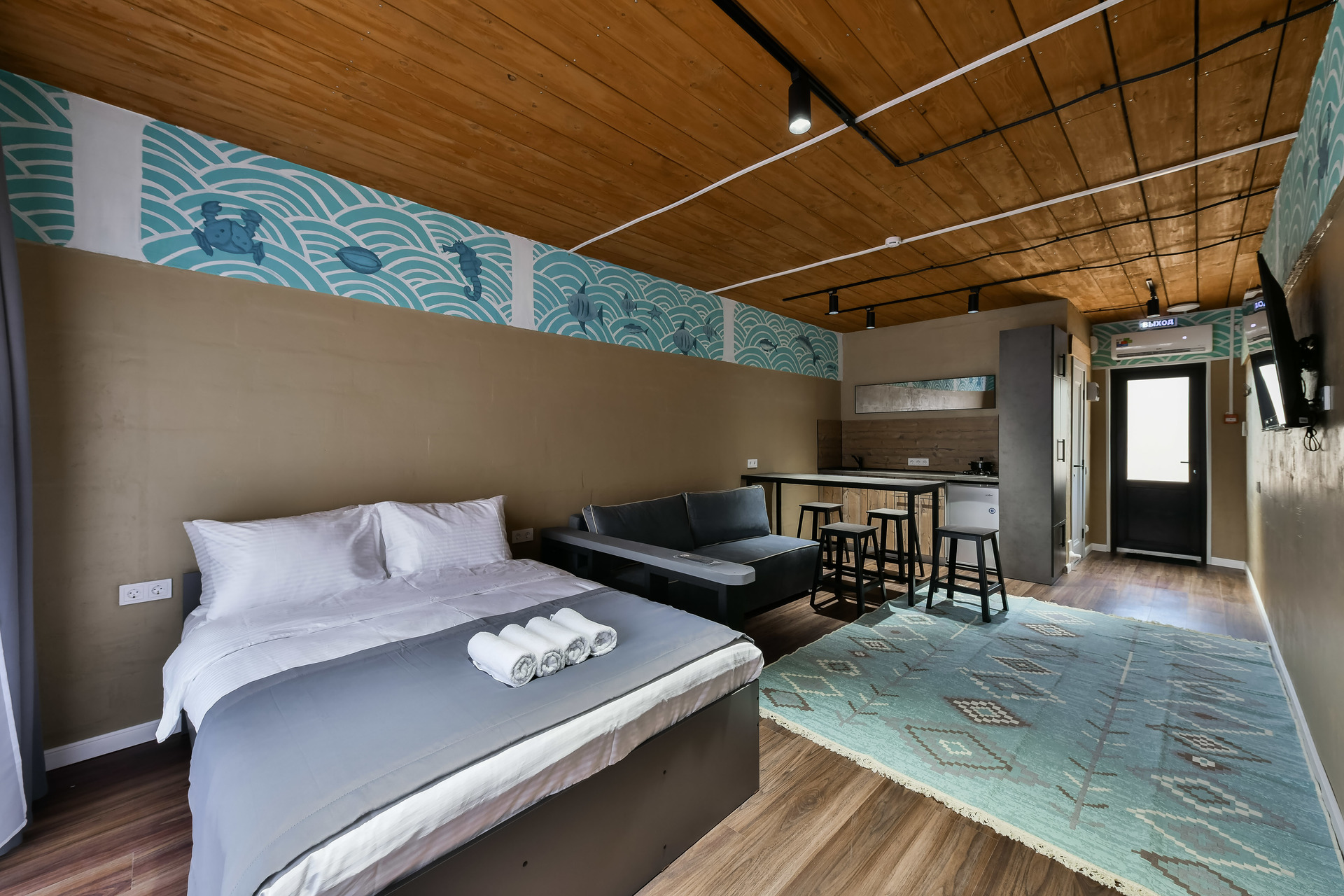Номер-студио с видом на море. Двуспальная кровать, раскладной диван.