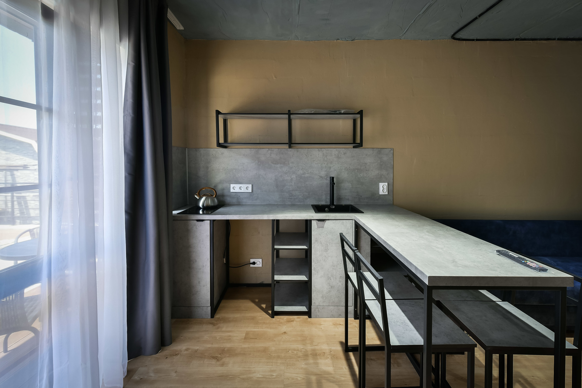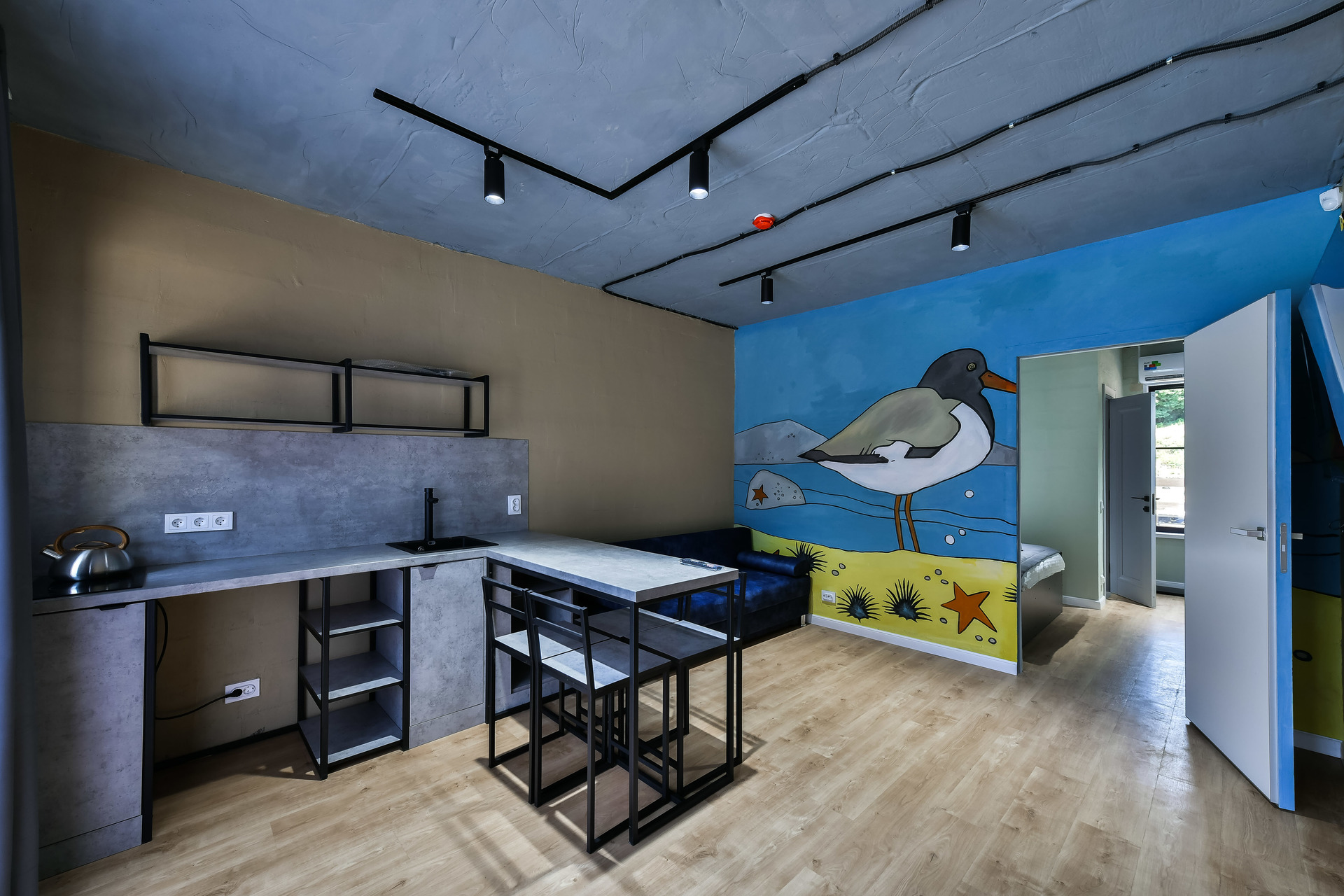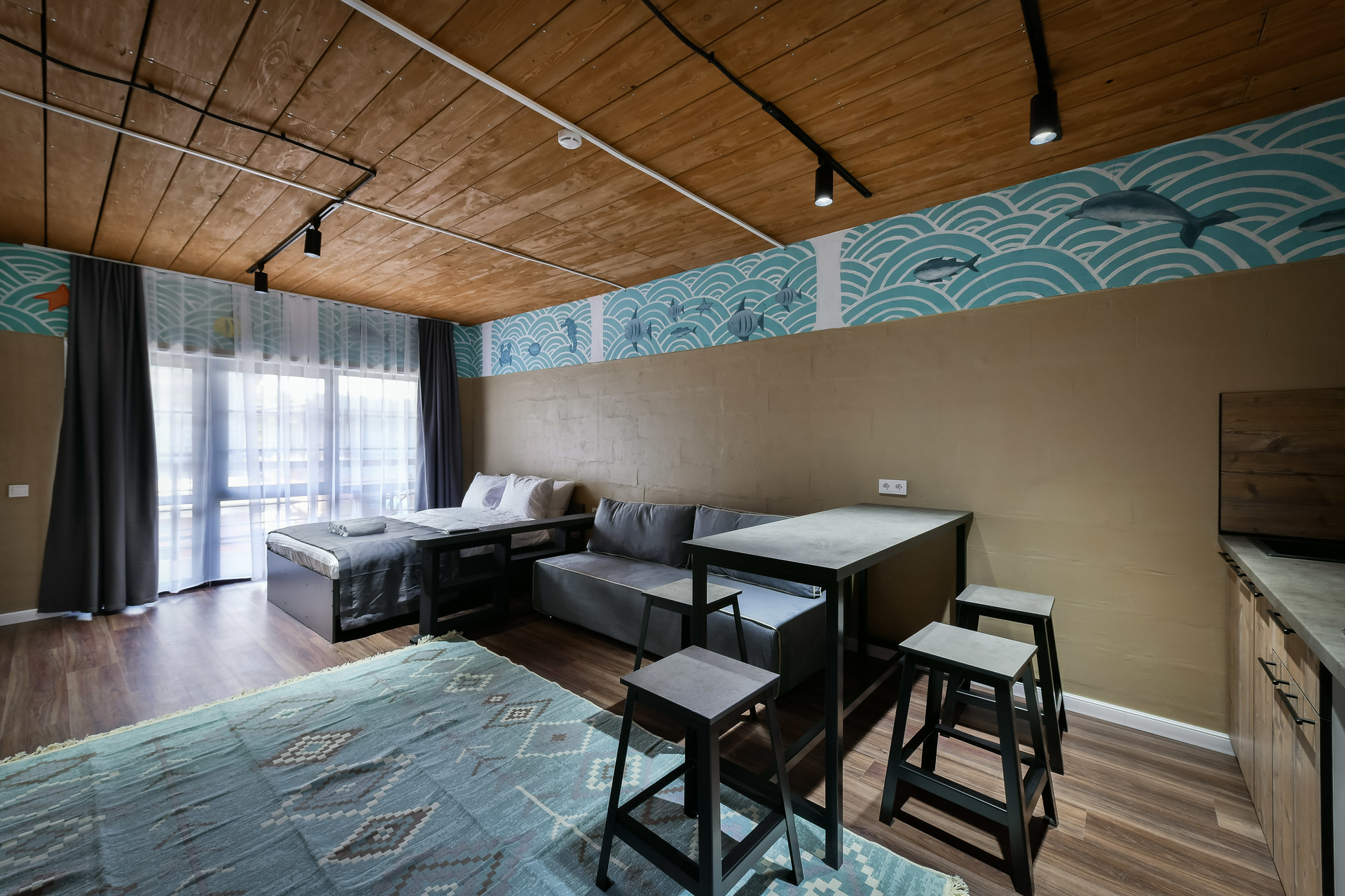 Номер-студио с видом на море. Двуспальная кровать, раскладной диван.