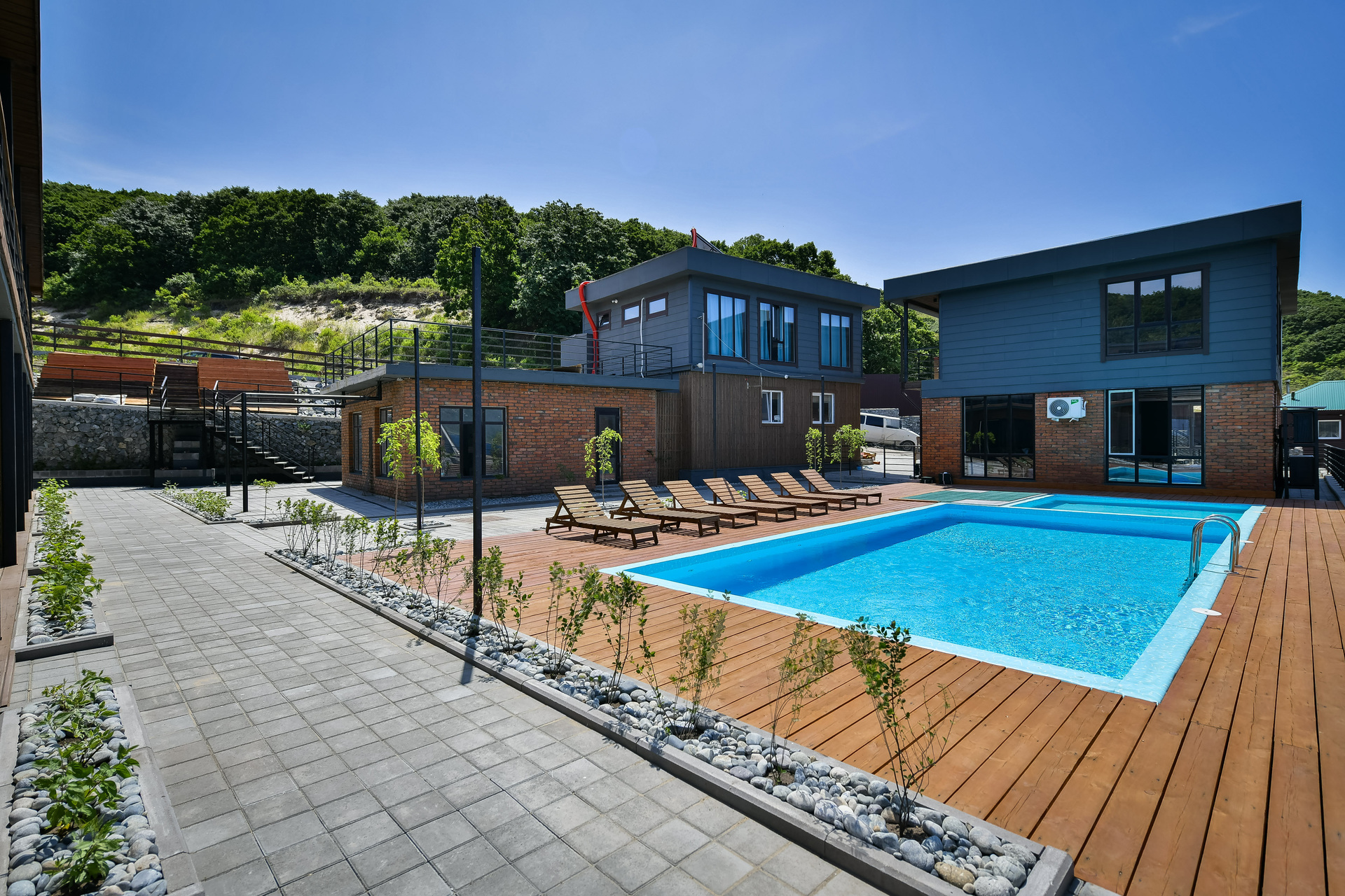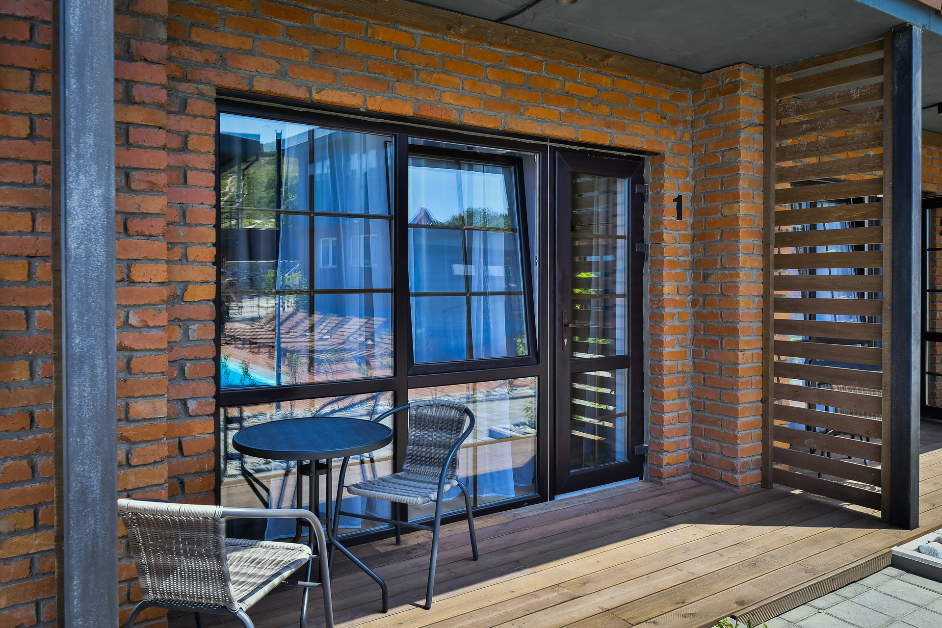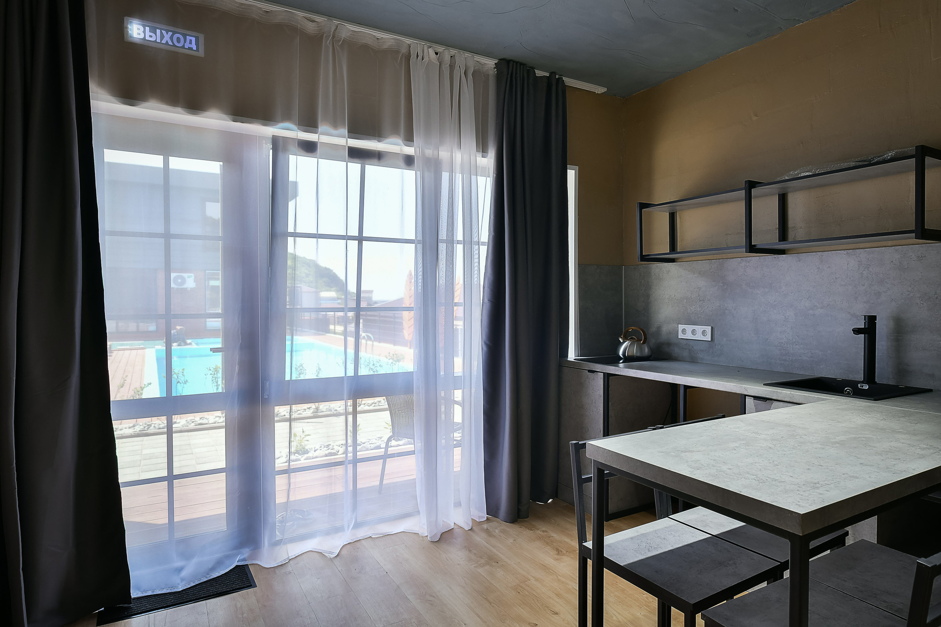 Первый этаж, терраса, вид на бассейн.